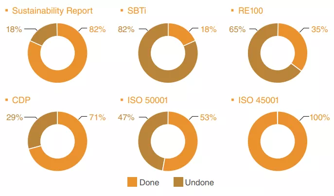 In 2024, questionnaires were distributed to suppliers accounting for 85% or more of the procurement amount, totaling 17 suppliers, including 6 battery cell suppliers, 9 electronics manufacturers, and 2 mechanical component manufacturers. The results of this survey show that 82% of suppliers have published sustainability reports 18% of suppliers have set SBTi carbon reduction targets. In addition, 35% of suppliers have set RE100 renewable energy goals, and 71% of suppliers have completed the CDP climate questionnaire. In terms of certification, 53% of suppliers have passed the ISO 50001 energy management system, and all suppliers (100%) have obtained the ISO 45001 Occupational Health & Safety certification.