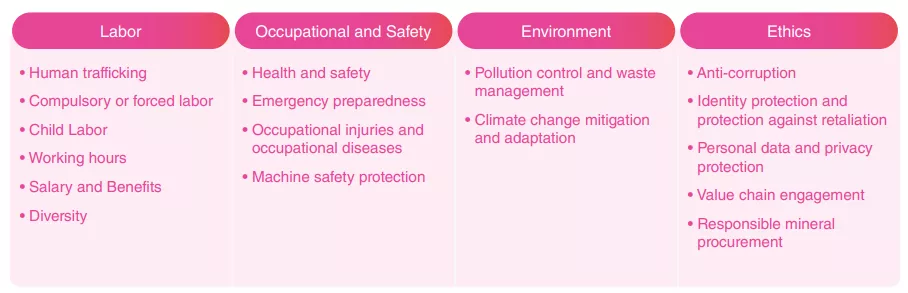 Simplo Group considered the characteristics of its own industry, and referred to the GRI Standards, RBA, the United Nations Global Compact, and ISO 26000 to design surveys. These surveys help identify human rights risks, categorizing issues into labor, occupational health and safety, environment, and ethical categories, totaling 17 issues.