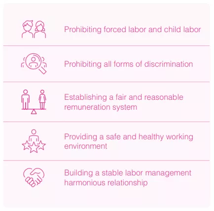 Simplo supports and complies with the principles and spirits of related international regulations such as the "Universal Declaration of Human Rights," the "United Nations Global Compact," the International Labor Organization Tripartite Declaration of Principles," the "Responsible Business Alliance Code of Conduct," and the "OECD Guidelines for Multinational Enterprises," as well as the local laws and regulations of various countries. Simplo has established the "Human Right Policy Statement of Simplo Co., Ltd. and Group Affiliates" for common compliance, in order to eliminate any violation and infringement of human rights, so that the rights and interests of stakeholders are protected.