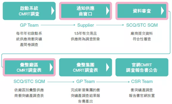 新普科技要求供應商遵循 OECD 所發布的「受衝突影響地區和高風險地區礦產供 應鏈的盡職調查指導方針」,並依據該指導原則開展盡職調查,同時也導入 RPA 自動化定時偵測 RMI 官網最新公布冶煉廠訊息,保持系統最完整的資料,採用滾動式自動化管理將已不存在合格冶煉廠的調查表重啟系統通知供應商展開再次調查,確保廠商提交資料符合最新法規與客戶要求。