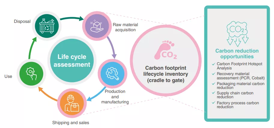 Based on the latest report issued by the Intergovernmental Panel on Climate Change (IPCC) of the UN, the greenhouse effect results in climate change and impacts human survival significantly. Product carbon footprints have become a hot issue of great concern for industry. The product carbon footprint refers to the total amount of greenhouse gas emissions throughout the process of acquisition of material, production and manufacturing, distribution, use, and disposal of a product. The disclosure of carbon footprints not only provides information of products, but also a method for finding carbon reduction hot spots.
