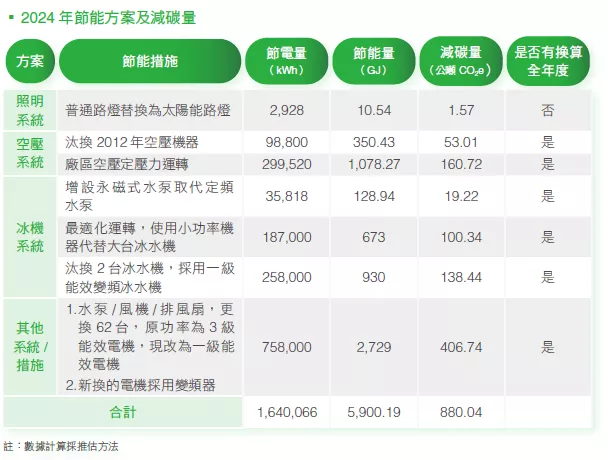 減碳成效:2024年範疇一和範疇二溫室氣體排放量相較於2020年基準年,減少88%