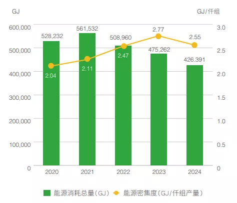 3.能源密集度计算公式:能源消耗量(GJ)/每仟组电池模块