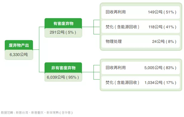 | 新普科技秉持「源头减量、废弃物资源化」理念,作为废弃物管理的基础。营运过程中所产生的废弃物,主要包括有害废弃物及非有害废弃物,均委由当地合格厂商进行清理作业;可回收及生活废弃物经分类后交由合格厂商清理及回收。废弃物管理以回收再利用为主,无法回收的废弃物则以焚化(回收能源使用),最后才用掩埋方式处理。 新普科技重庆厂区,通过国际 UL 2799「废弃物零填埋(Zero Waste to Landfill, ZWTL)」铂金级认证,达到「100% 废弃物转化率含 7 % 焚烧热回收」,具体实践废弃资源活化、绿色循环环境永续的承诺。 2024年废弃物产生量6,330公吨,其中可回收再利用5,154公吨,不可回收再利用1,176公吨,持续推动源头减量及厂内废弃物回收再利用外,以减少生产对环境负荷。 |