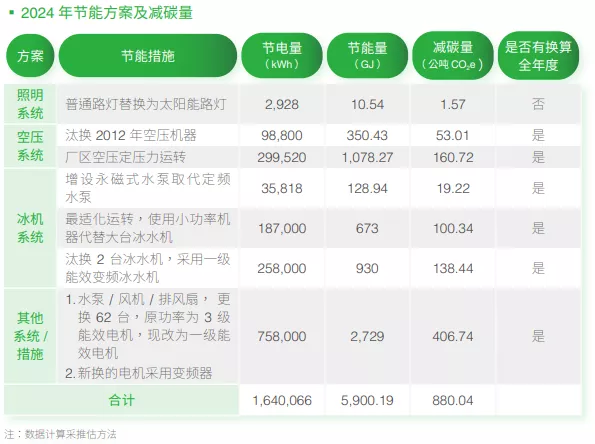 - 减碳成效:2024年范畴一和范畴二温室气体排放量相较于2020年基准年,减少88%